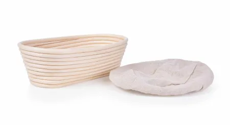 GoEco® fa kosár PECEN 24 cm hosszú, levehető textil borítással ideális a házi péksütemény készítők számára, akik kb. 600 g súlyú kenyeret szeretnének sütni. Megőrzi a tészta megfelelő formáját a kelesztés során, biztosítja az egyenletes átsütést és vonzó ropogós kérgét ad a kenyérnek. A lenvászon borítás elnyeli a lisztet, megkönnyíti a tészta kiemelését, és könnyen mosható.