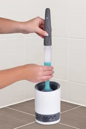 Felejtsd el a hagyományos WC keféket! GoEco® 2 az 1-ben szilikon WC kefe beépített tisztítószergél adagolóval a nyélben maximális higiéniát és kényelmet biztosít minden használat során. Csak egy gombnyomás a gélen, és az közvetlenül arra a helyre adagolódik, ahol szükség van rá.