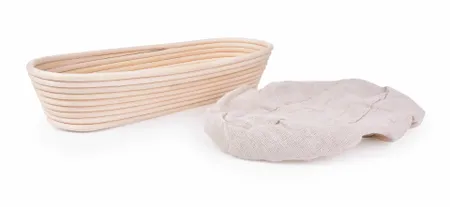 GoEco® SEDLÁK fa kosár 35 cm hosszú mosható textil borítással, amely nagyszerű segítőtárs a házi pékek számára. Lehetővé teszi egy nagy kenyér kelesztését, amelynek súlya kb. 1300 g, megőrzi a tészta formáját, és elősegíti a ropogós, vonzó héj kialakulását. A lenvászon borítás felfogja a lisztet, megkönnyíti a tészta kiemelését, és könnyen eltávolítható és mosható.