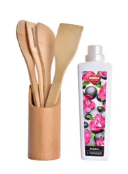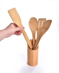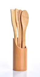 GoEco® | 5 db bambusz konyhai eszközkészlet | Fakanalak és fordítók állványban