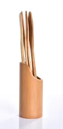 Öko 5 részes bambusz konyhai eszközszett GoEco® állványban. Tartós, antibakteriális, nem szívja magába a szagokat, ideális egészséges és fenntartható főzéshez.