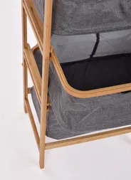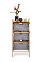 BAMBUS REGÁL 3 kihúzható tároló kosárral szürke melírozott textilből, rajta bambusz polccal.