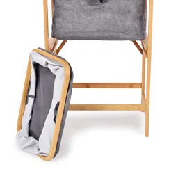- Elegáns dizájn – a szürke textil kosarak kombinációja a bambusszal modern és tiszta hatást kelt.