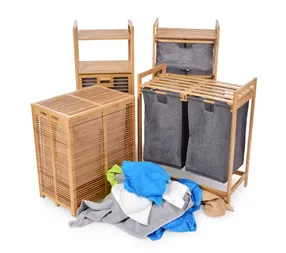 A GoEco® bambusz polc (95 cm) kihajtható ruhás kosárral és két felső polccal ideális a fürdőszobába vagy a mosókonyhába. Elegáns ruhaszortírozást és rendezett törölközők és kozmetikumok tárolását teszi lehetővé. Magasnyomású bambuszból készült – tartós, ökologikus, stílusos.