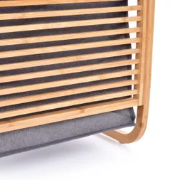 Túlcsorduló szennyes? Soha többé! Ez az elegáns GoEco® bambuszláda stílusosan tartja a szennyes ruhát a wellness spa részévé. Nagyszerűen néz ki, és a kivehető táska és praktikus fedél segítségével kellemes rendet tart a háztartásban – anélkül, hogy zűrzavart okozna.