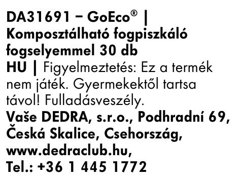 A fogpiszkáló szilárd része kukoricából (PLA anyag) készült, és 100%-ban komposztálható!