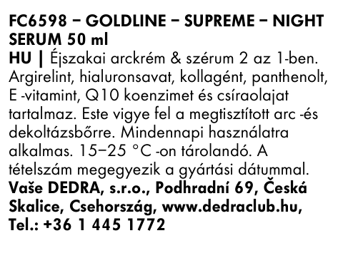 GOLDLINE | éjszakai arckrém & szérum Argirelinnel, hialuronsavval & Q10-el | ránctalanítás & éjszakai regenerálás