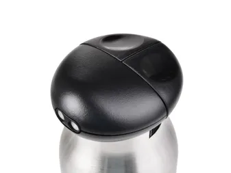 Üveg, rozsdamentes acél és műanyag kombinációja. Átmérő 5,5 cm, magasság 20 cm.