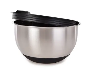 Kompakt 2 L rozsdamentes acél GOURMET tál fedővel és csúszásgátló aljjal. Ellenálló, vastag falú, ideális tészták kelesztéséhez, keveréshez vagy kisebb adagok tálalásához.