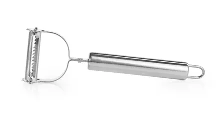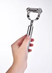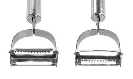 A GOURMET 2 az 1-ben professzionális rozsdamentes acél hámozó 2 db 5 cm hosszú fűrészpengével ideális a puha héjú gyümölcsök, mint a paradicsom, őszibarack, kiwi vagy szilva gyors hámozásához. A kétoldalas kivitel lehetővé teszi a kényelmes használatot jobb- és balkezesek számára, miközben meghosszabbítja az eszköz élettartamát.