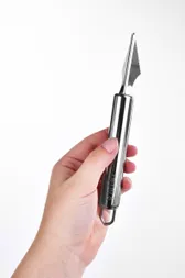 A professzionális rozsdamentes GOURMET kiszúró 18 cm hosszú, ideális gyümölcsök és zöldségek érdekes formáinak létrehozására. Használható dekorációk, saláták, gyümölcsözönök készítéséhez, vagy ételek eredeti tálalásához. Az fényes rozsdamentes acélból készült, tartós kialakításnak köszönhetően könnyen megbirkózik a keményebb zöldségekkel is, mint a sárgarépa, uborka vagy retek.