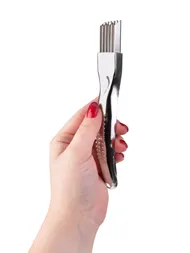 A 16 cm hosszú professzionális rozsdamentes acél zöldségszeletelő GOURMET ideális segítője a tavaszi hagyma, póréhagyma, fokhagyma és egyéb zöldségek gyors és precíz szeletelésének, egyenletes csíkokra vagy szeletekre. Kiváló minőségű rozsdamentes acélból készült hat éles pengéjével néhány másodperc alatt elvégzi a feladatot.