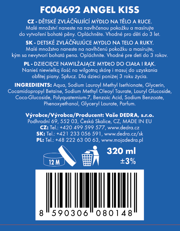 ANGEL KISS | gyengéd gyermek szappan a testre és kézre | hipoallergén, parabén-mentes | 320 ml