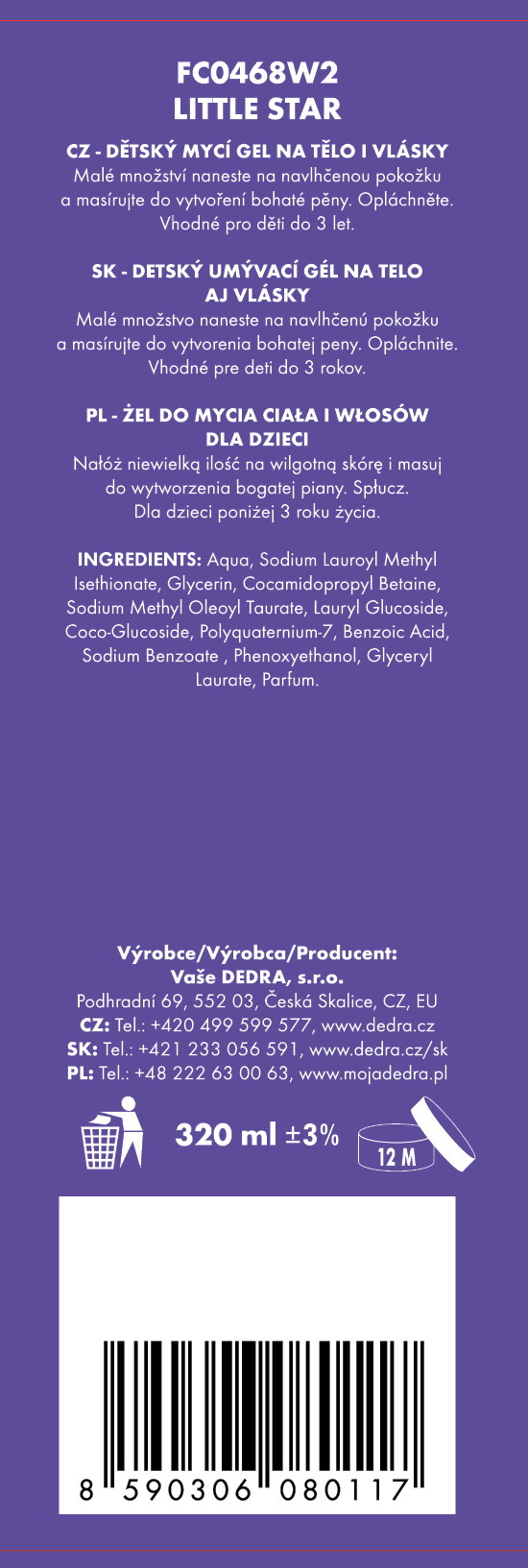 LITTLE STAR | gyermek ultra puha tusfürdő testre és hajra | hipoallergén, parabénmentes | 320 ml