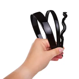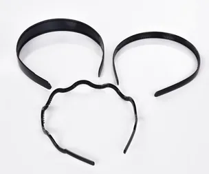 3 db-os fejpánt készlet, a belső oldalon finom fésűk találhatók, amelyek segítségével szépen megtartják a haj formáját. Műanyagból készült. Méretek: széles fejpánt szélessége 2,4 cm, keskeny fejpánt szélessége 1,2 cm, hullámos fejpánt szélessége 0,6 cm.