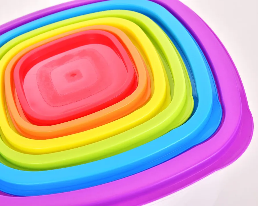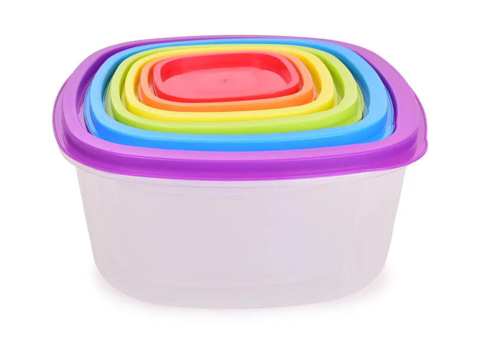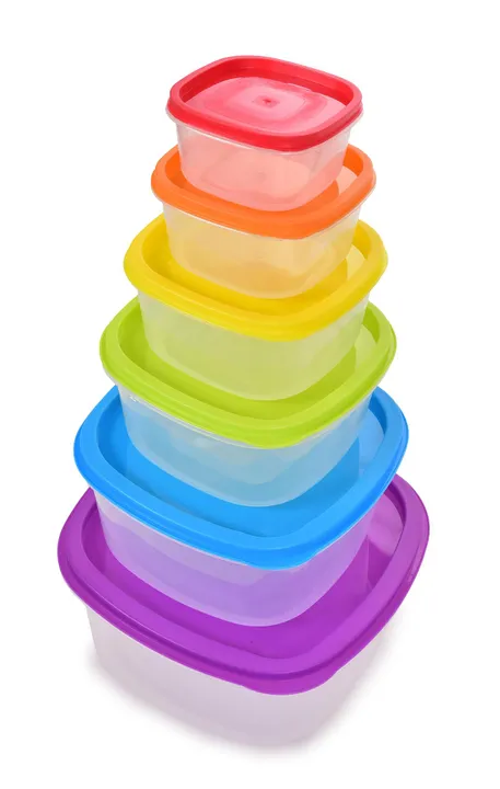 HAT KIS TARTÁLY | 6 darabos élelmiszertartó készlet | színes fedéllel