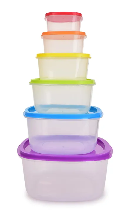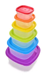 Praktikus 6 darab műanyag tárolódoboz színes fedéllel élelmiszerek tárolására, szállítására és fagyasztására. Helytakarékosan egymásba helyezhetők, mosogatógépben, mikrosütőben és fagyasztóban is használhatók - ideális dobozdiétákhoz és otthoni tároláshoz.
