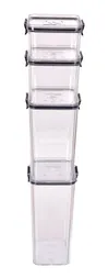 Az HERMETIC (1,3 L) edény erős klipszes fedéllel és szilikon tömítéssel ideális segítőtárs a csomagolásmentes, száraz és morzsás élelmiszerek tárolásához. Megőrzi a tésztát, lisztet, rizst, cukrot, kávét, teát, hüvelyeseket vagy diókat sokáig szárazon, illatosan és védve a nedvességtől és a szagok felszívódásától. A fedél megemelt széle lehetővé teszi, hogy az edények biztonságosan egymásra helyezhetők, így helyet spórolva a spájzban vagy a hűtőben.