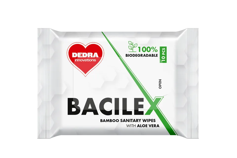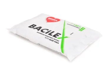 A BACILEX® bambusz hygénikus nedves törlőkendők Aloe Vera-val gyengéden tisztítják és felfrissítik a bőrt. Biológiailag lebomló, műanyag szálak nélkül, finom kozmetikai illattal. Ideális utazásokra és mindennapi használatra. A csomag 10 db-t tartalmaz.