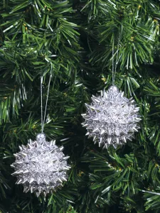 POLÁRNÍ KRYSTALY | nagy dekoratív gömbök szálakkal és csillámokkal | 2 db-os szett | 9 cm