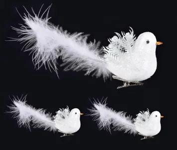 ANGELIA | dekoratív madarak tollakkal és fém csipesszel | 3 db/ készlet | 15 cm