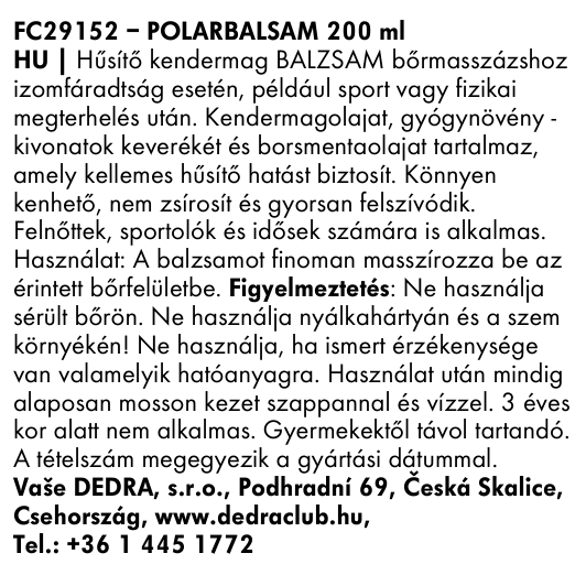 POLAR BALSAM | hűsítő kenderbalzsam a bőr masszírozásához izomfáradtság esetén | 200 ml