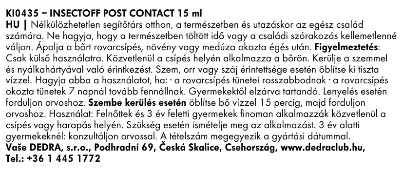 Golyós gél rovarcsípés után 🦟 , INSECTOFF POSTCONTACT, 15 ml.
