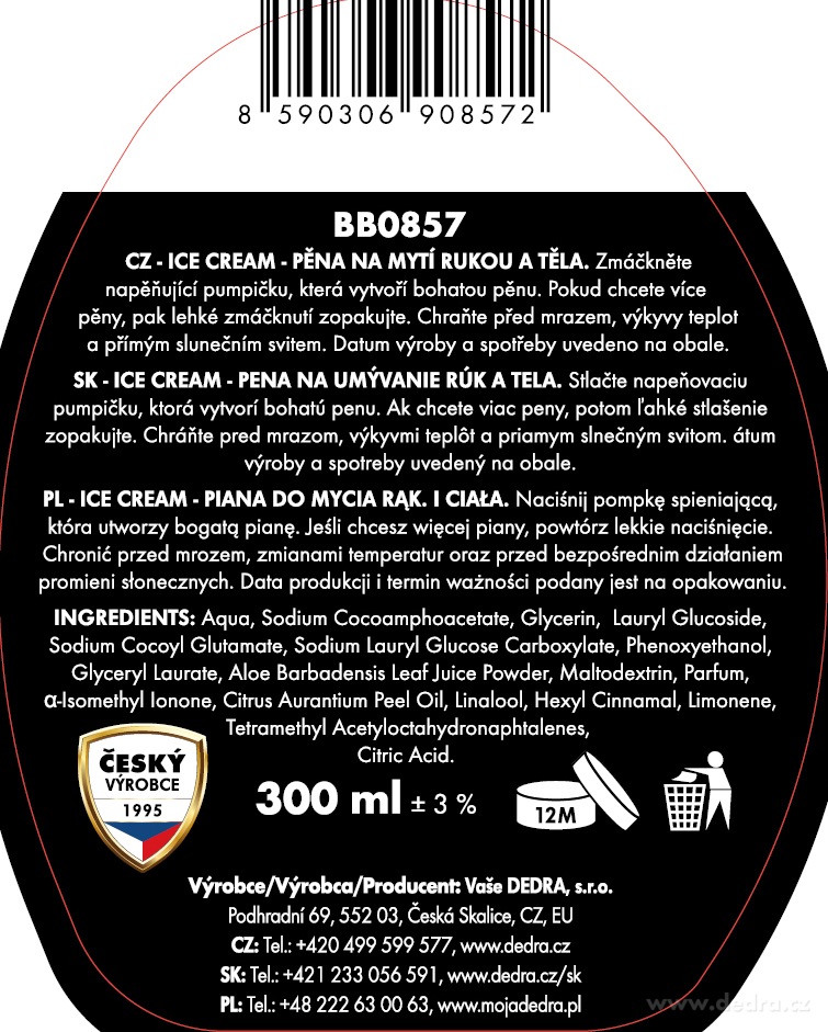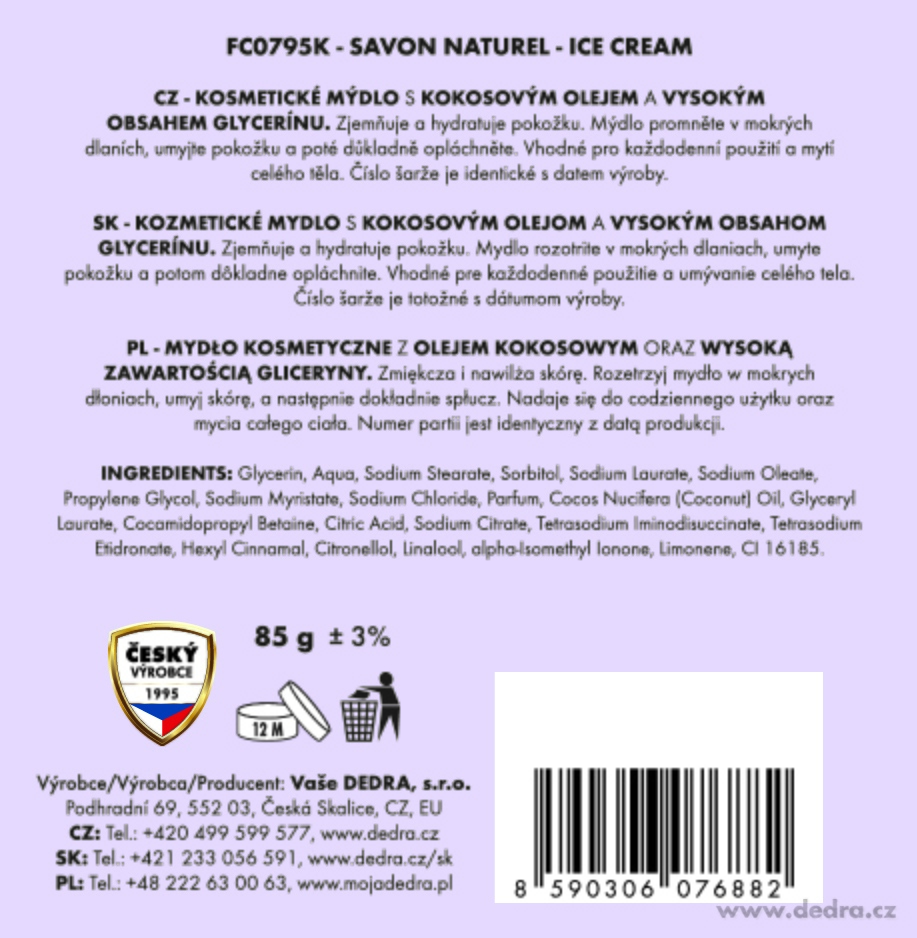 A Dárková sada ICE CREAM édes kényeztetést és illatot tartalmaz egyben! Tartalmaz egy zuhanyzót, habszappant, kézzel készült növényi szappant és szója illatgyertyát. Ideális ajándék a fagylalt és vanília illatának kedvelőinek. Az egész készletet egy átlátszó tasakba csomagolhatod, amely a csomag része.