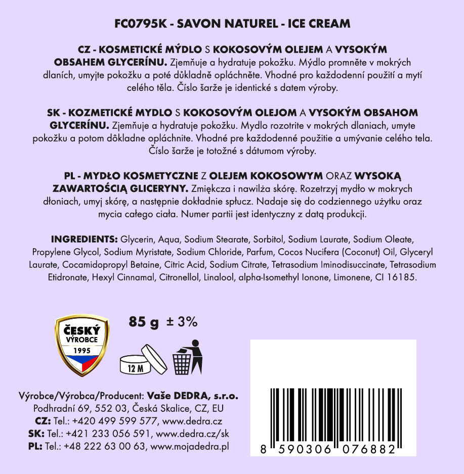 ICE CREAM | kézzel készült növényi szappan kókuszolajjal és glicerinrel | 85 g