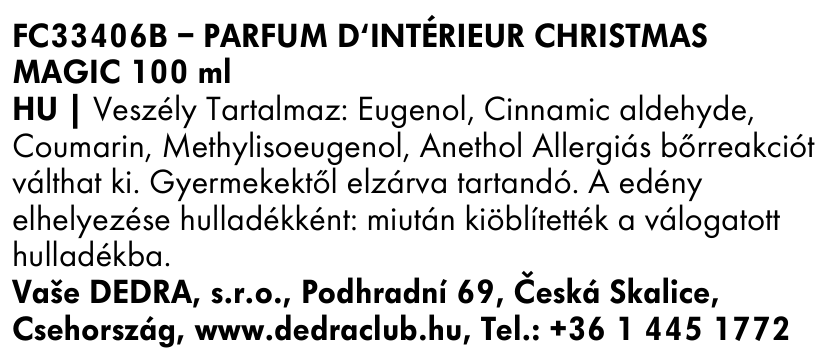 KARÁCSONYI VARÁZSLAT | lakásillat spray | PARFUMIA® PARFUM D'INTÉRIEUR | 100 ml