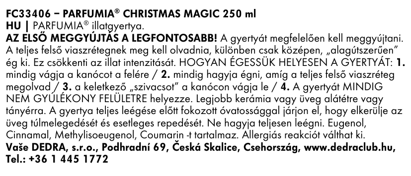 KARÁCSONYI VARÁZSLAT | szójagyertya | PARFUMIA® | 250 ml