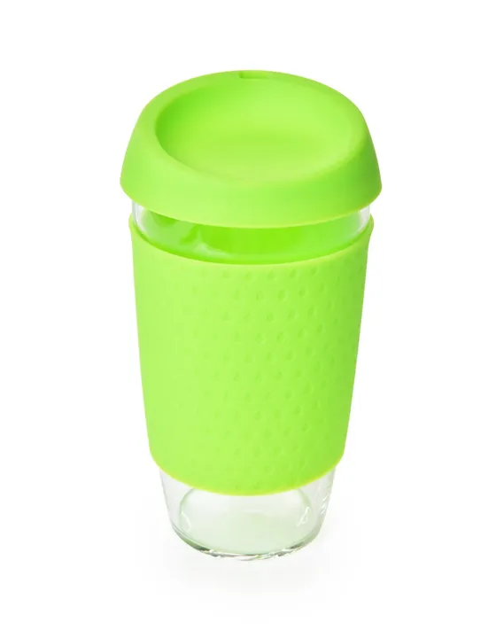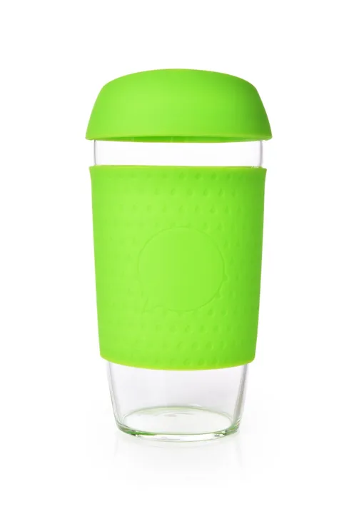 KELIMERO® | üveg kávés pohár TO GO 500 ml | szilikon tetővel és mandzsettával | élénk zöld