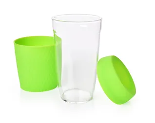 Üveg kávés pohár 500 ml boroszilikát üvegből, levehető szilikon kupakkal és mandzsettával. Stílusos alternatíva az egyszer használatos poharak helyett - mosogatógépben, mikróban és hűtőben egyaránt használható.