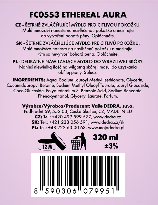 SENSITIVE kímélő hidratáló szappan érzékeny bőrre | ETHEREAL AURA | 320 ml.