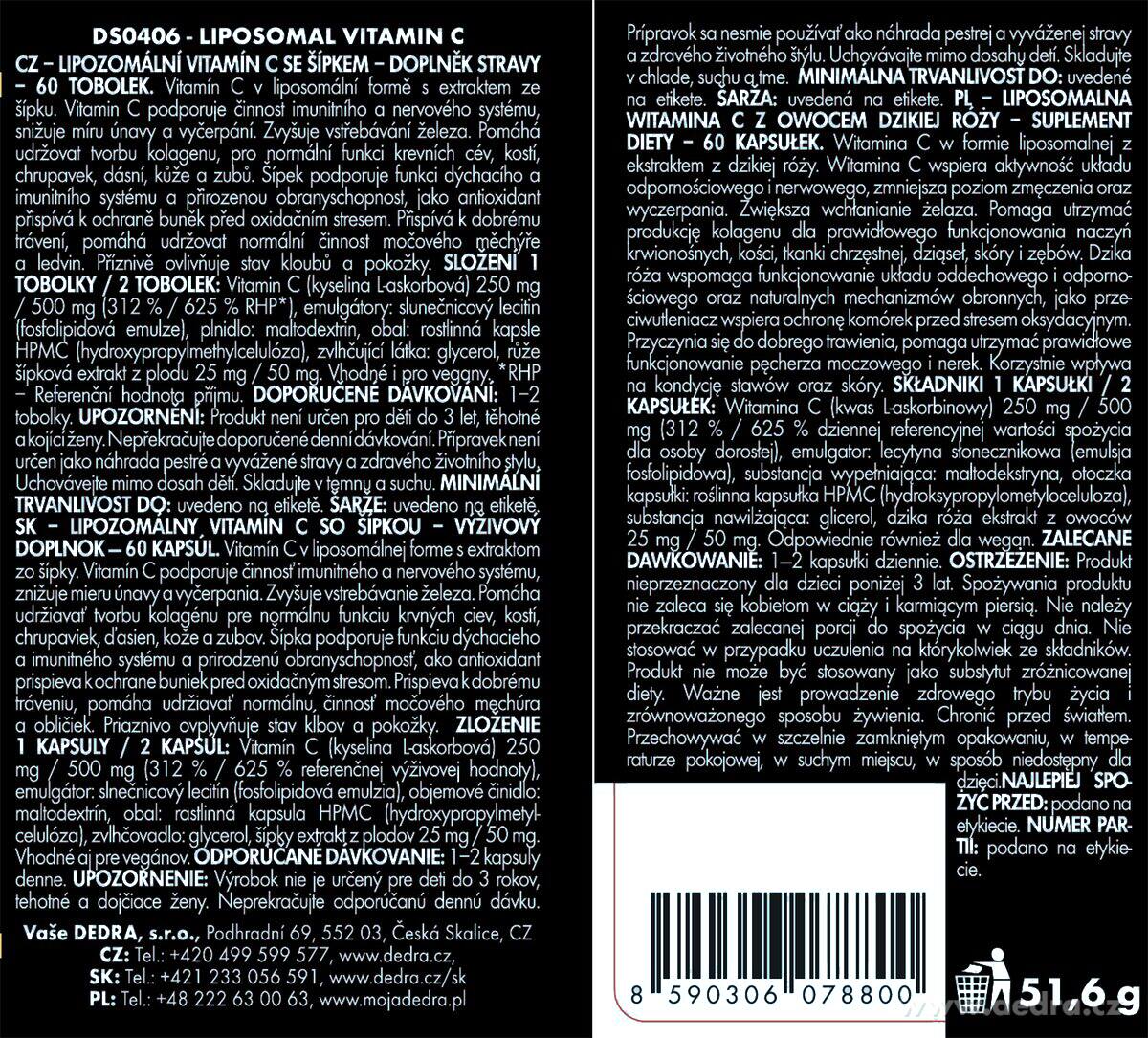 - 1x LIPOZOMÁLIS C-VITAMIN csipkebogyóval 250 mg, maximális felszívódás, immunitás & vitalitás, 60 kapszula
