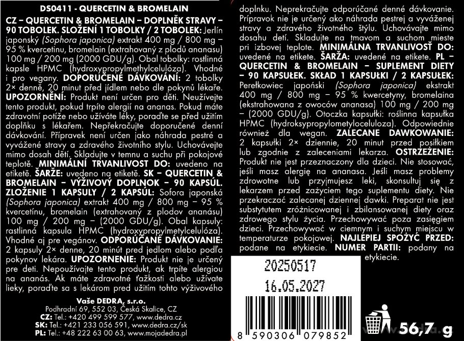 - 1x QUERCETIN + BROMELAIN 500 mg, természetes flavonoid & ananász enzim, 90 kapszula