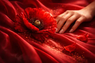 A POPPY MEADOW a luxus és pompázás megjelenését hozza létre, amely a skarlát mák gazdagságát és szépségét tükrözi az ázsiai hazájának steppein.