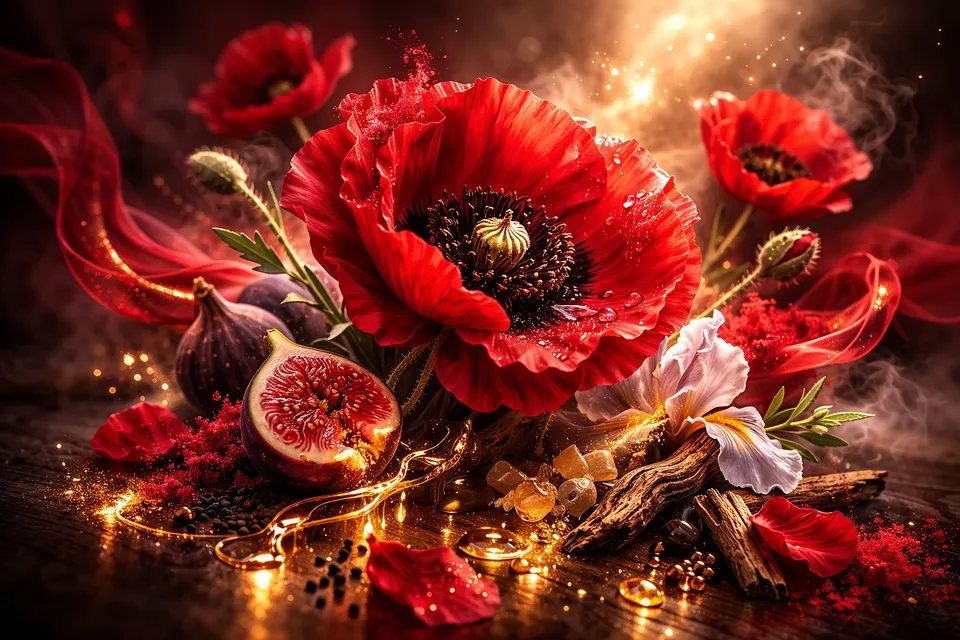 Időtlen és édes érzéki illata teljesen magával ragadja Önt a skarlát mák inspirációjával, és egy kalandos útra viszi az Ázsiába, ahol ez az extravagáns virág természetesen növekszik. A bársonyos írisz és a peruvi héliotrop összeállt, hogy egy nemes atmoszférát hozzon létre. A árpa és a tonka bab jelenléte fokozza az édes dekadenciát, míg a füge egy lédús élménybe von be.