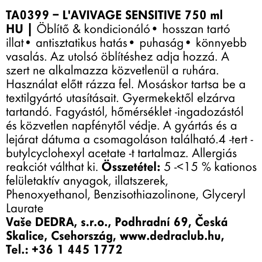 L'AVIVAGE SENSITIVE | Öblítő kondicionáló