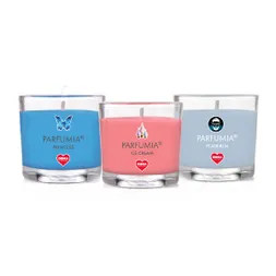 A készlet tartalmaz 3 x 55 ml szója illatos EKO gyertya PARFUMIA®: