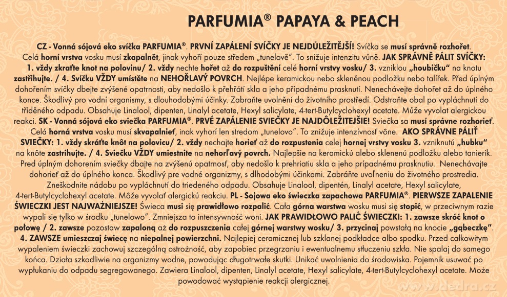 - 1x votiv szója gyertya, PAPAYA & PEACH, PARFUMIA®, 55 ml