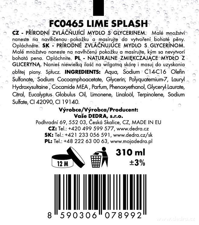 - 1x kíméletes glicerines folyékony szappan, LIME SPLASH, 310 ml