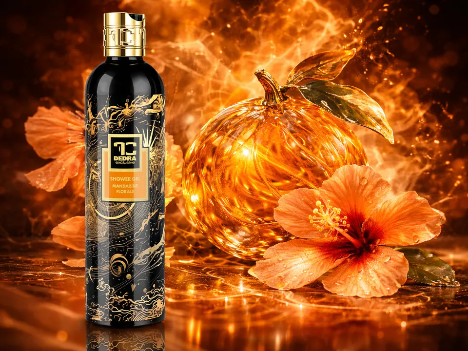 MANDARINE FLORALE – exkluzív tusfürdő az FC DEDRA exclusive kollekcióból frissen facsart mandarin, vanília és hibiszkusz illatával, gazdag mósusz, pacsuli és moha tónusokkal. Glicerinnel és Aloe verával a selymesen sima bőrért. SLS, SLES és parabének nélkül.
