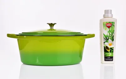 Porcelánbevonat ellenálló, higiénikus és könnyen tisztítható. Nagy fogantyúk megkönnyítik a kezelését, még teljes töltet esetén is.