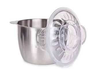 - 2,5 L-es rozsdamentes tál fogantyúval.