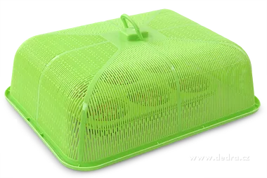 Nagyméretű műanyag fedél, MEGAPOKLOP fogantyúval, méretei: 45,5 × 35,5 × 14 cm. Védi az ételeket, szendvicseket és a teljes tepsiket a rovaroktól és a portól. Ideális ünnepségekre, piknikekre és mindennapi étkezésekhez.
