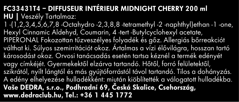 MIDNIGHT CHERRY | utántöltő a FLOW diffúzorhoz & pálcikák | PARFUMIA® | 200 ml