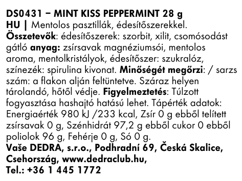 MINT KISS | erősen borsmentás, cukormentes frissítő pasztillák