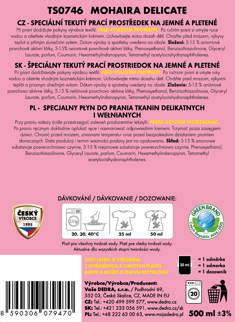 MOHAIRA | Mosógél finom & kötött ruhákhoz, kötött és kasmír anyagokhoz | DELICATE | 20 mosás