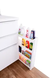 Remek például a konyha és a hűtő közé, a mosógép vagy WC mellett, ahol praktikus "titkos" helyet teremt a zacskóknak, edényeknek, tisztítószer üvegeknek, olajoknak, ketchupnak, fűszereknek vagy toalettpapírnak. A SLIM WHITE ideális mindenkinek, aki maximum tárolóhelyet szeretne otthonának átalakítása nélkül.
